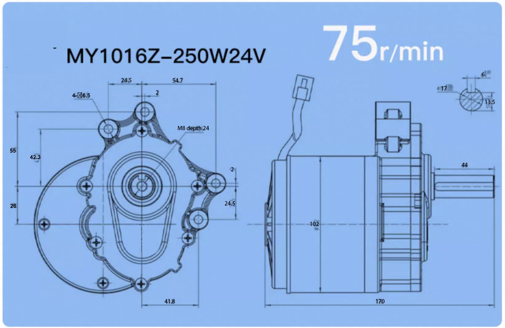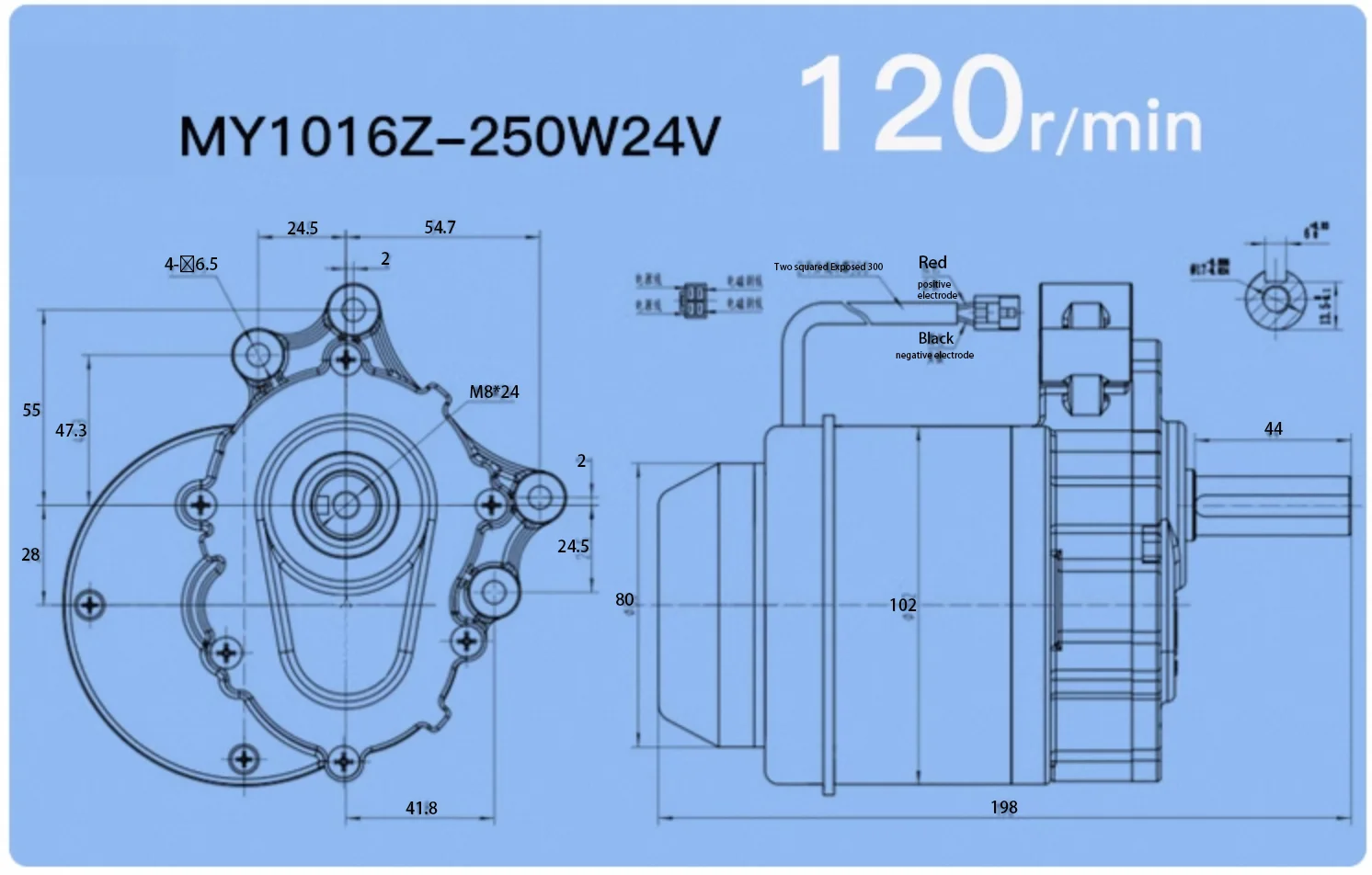 تخفيض السرعة الثانوية لكرسي متحرك للسيارة الكهربائية ، محرك ناعم ، 24 فولت ، بليو W ، 75 دورة في الدقيقة ، 44 دورة في الدقيقة ، رمح أطول ، 0.98N.m