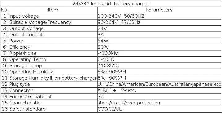 شاحن بطارية الرصاص الحمضية 24 فولت/3A |